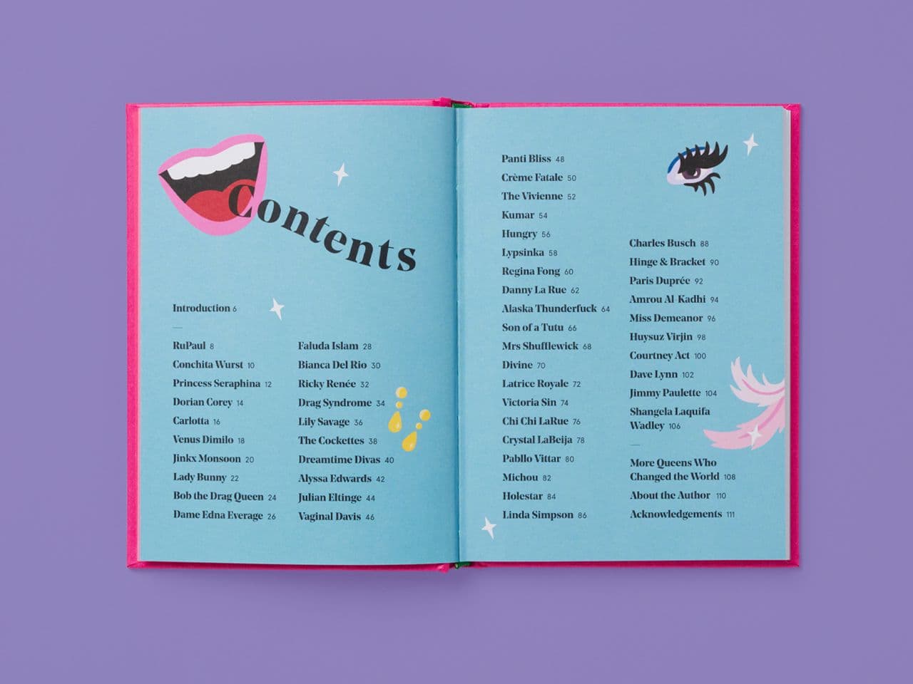 This vibrant celebration pays tribute to drag icons from RuPaul and Divine to Bianca Del Rio and Victoria Sin. Our design mirrored the individuality and glamour of drag, giving each profile space to shine while keeping the book cohesive as part of the series.
