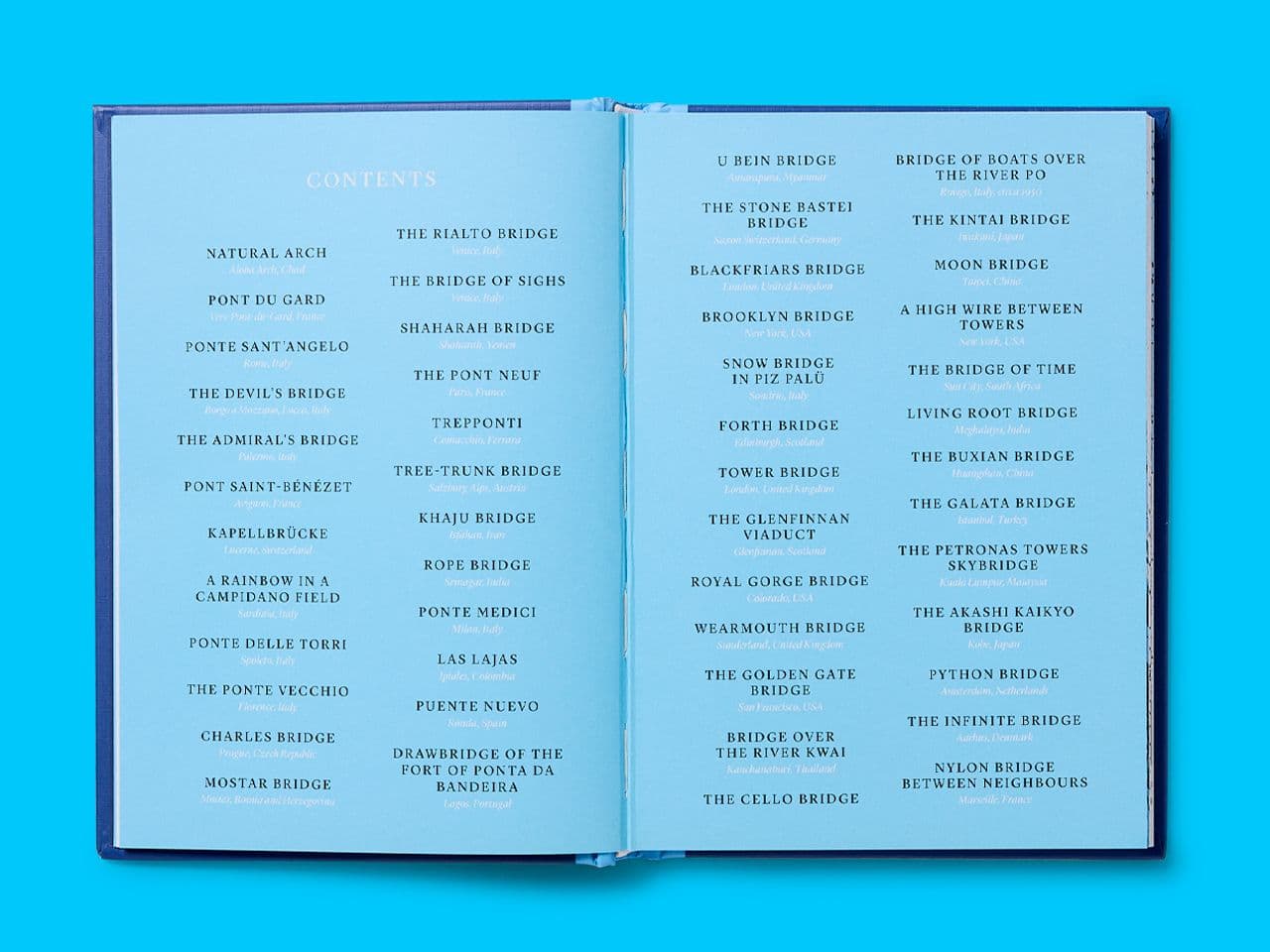 Commissioned by Welbeck Publishing, we were asked to design the gift edition of Bridges of the World by Giancarlo Ascari and Pia Valentinis. The book explores fifty iconic bridges across history, from London’s Tower Bridge and San Francisco’s Golden Gate to ancient stone arches and contemporary feats of engineering.