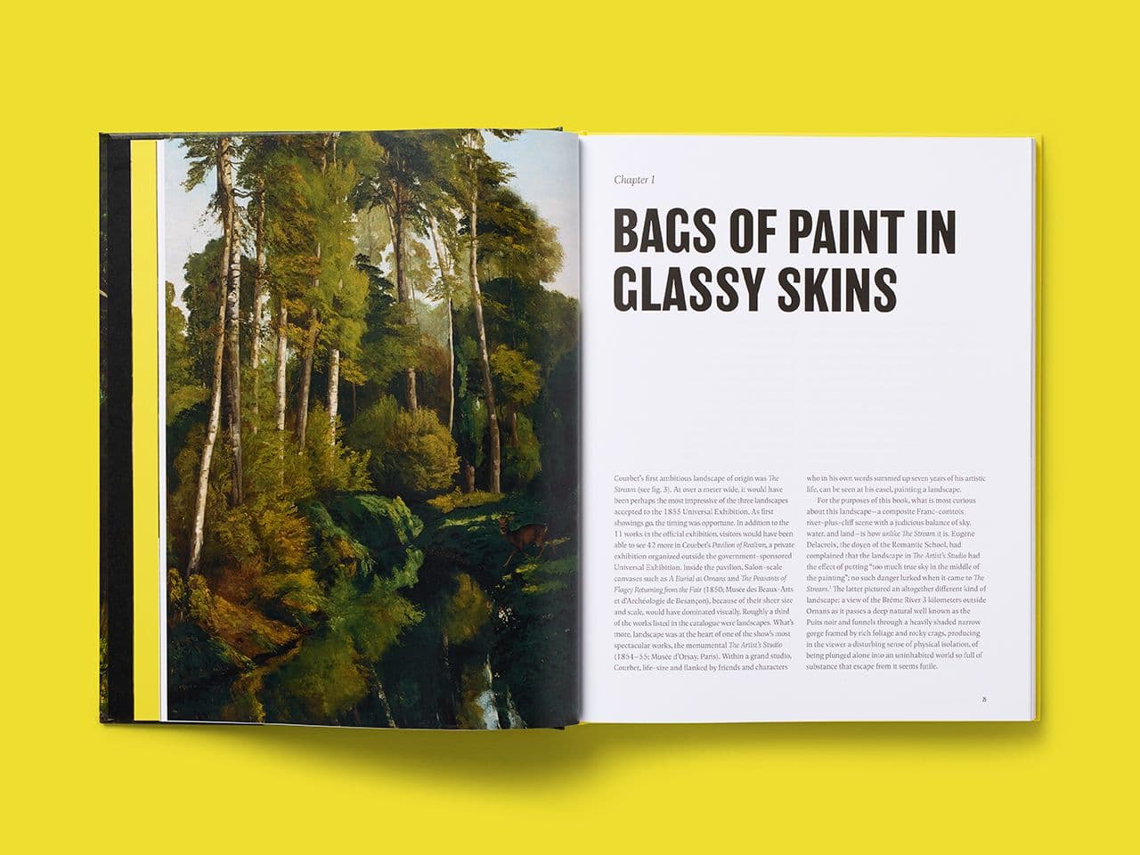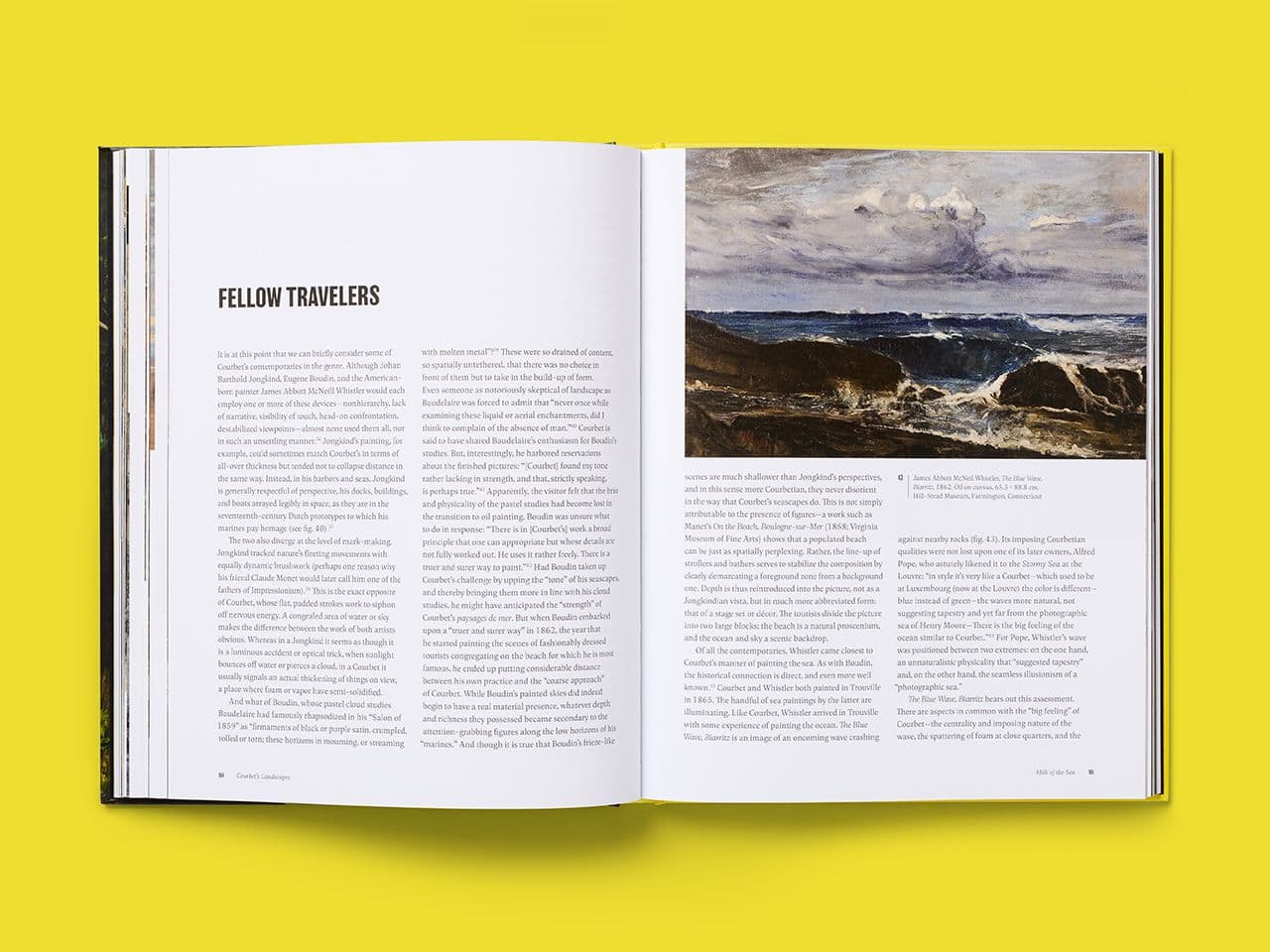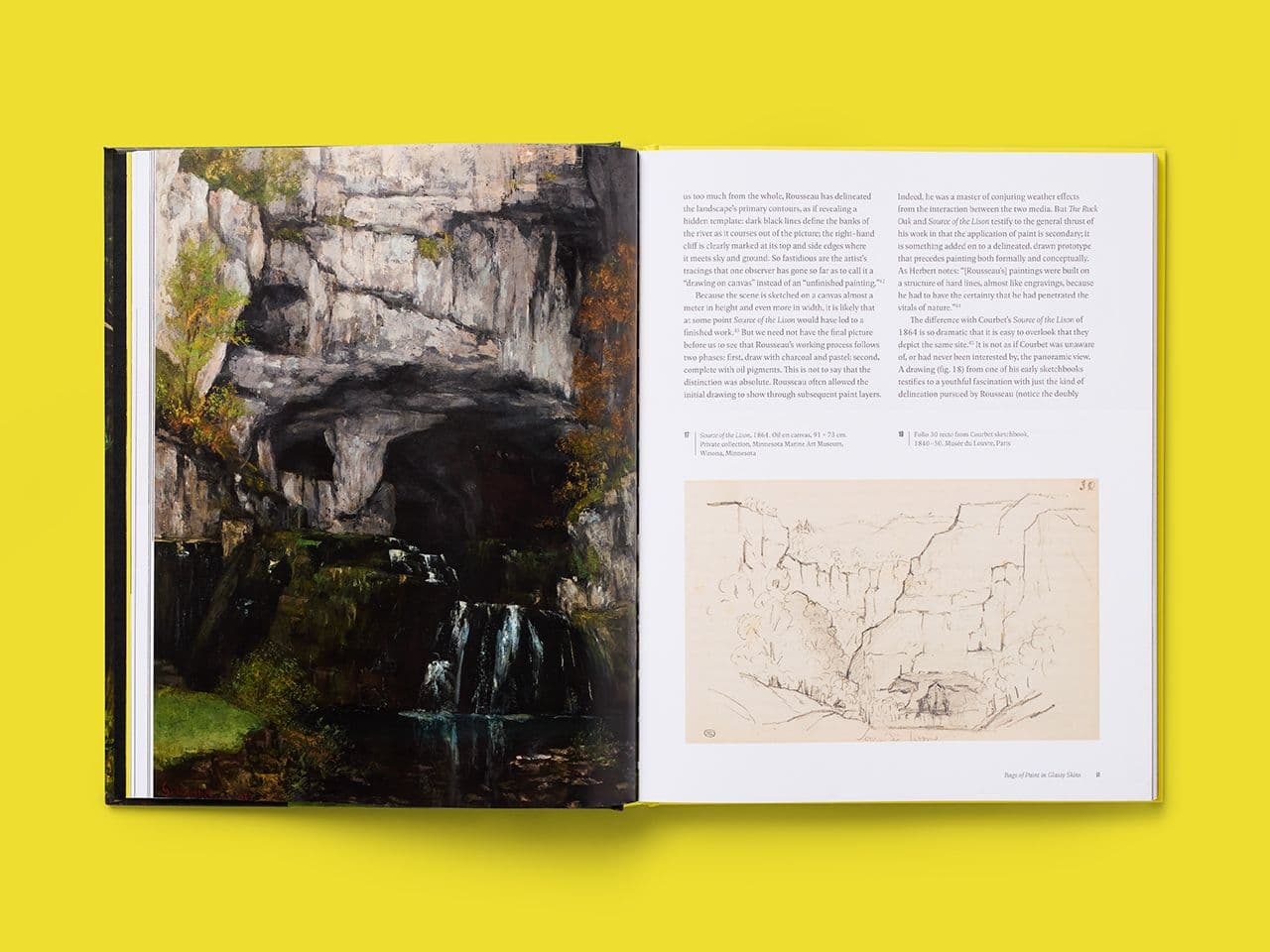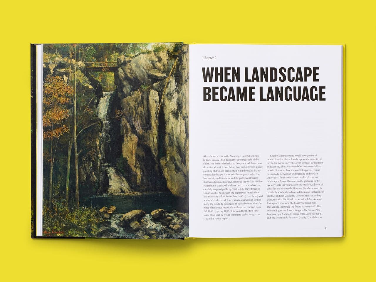 Our design uses bold typography and generous image handling to give Courbet’s sensual landscapes the presence they deserve. Full-page reproductions sit alongside Galvez’s critical writing, with layouts structured to create space for close analysis while immersing the reader in Courbet’s work.