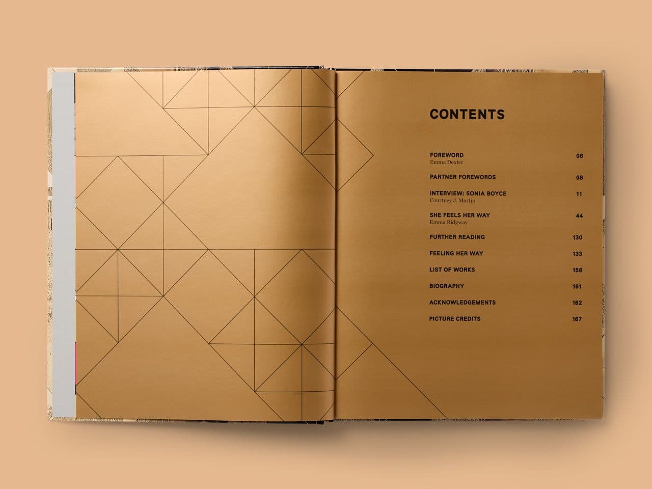 We designed the cover, internal layouts, and artworking, creating a catalogue that placed Boyce’s artwork at the centre. Working closely with her team, we wove her visual language into the design — echoing her use of gold, geometric patterns, and sharp angles throughout the publication.
