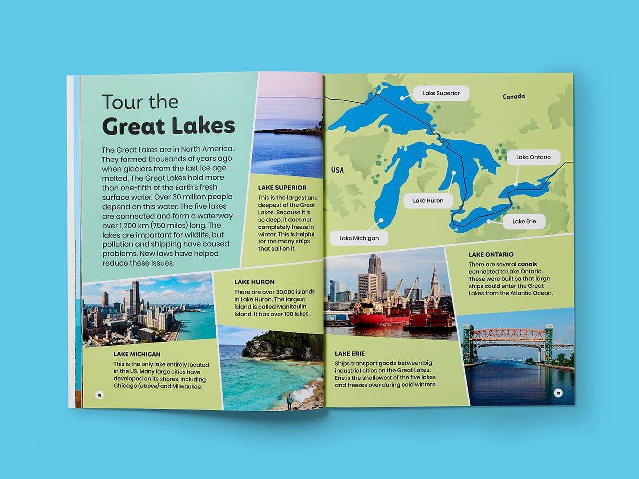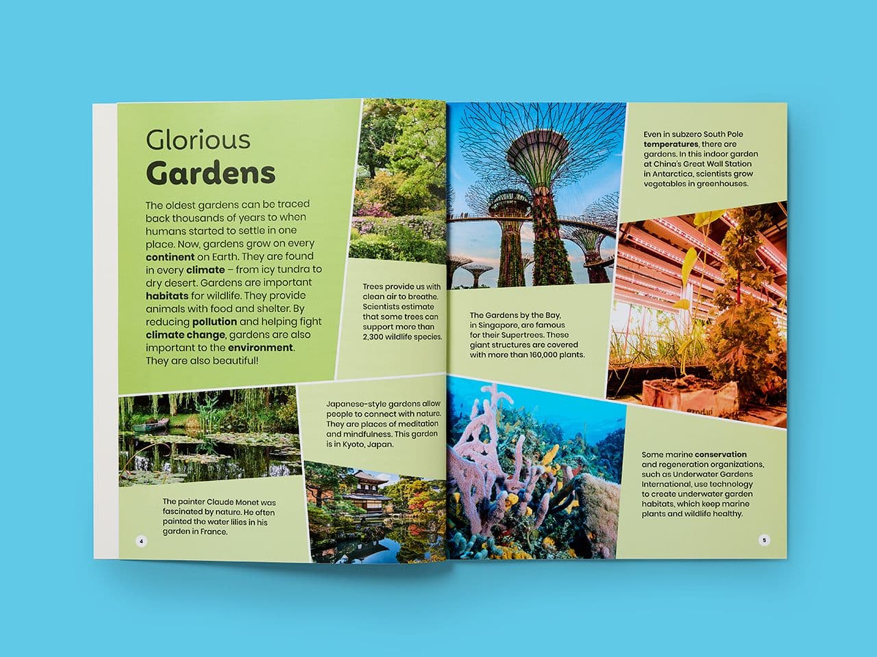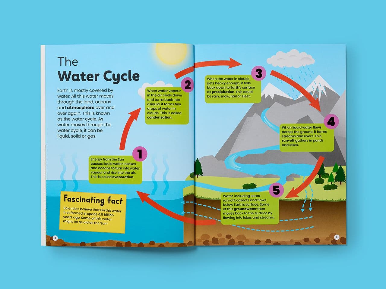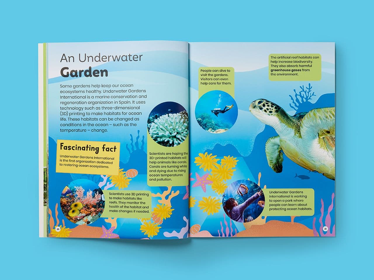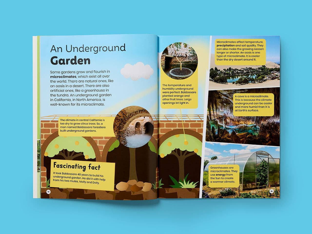 Our approach combines clear typographic hierarchies with vibrant illustrations and easy-to-navigate infographics. Each spread is designed to balance information with discovery, encouraging children to explore ideas through both text and hands-on experiments.
